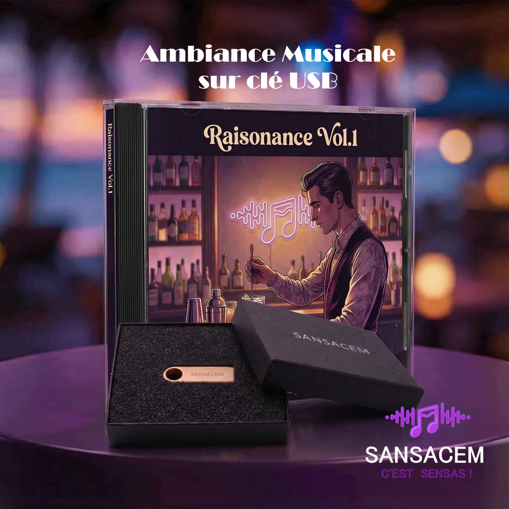 Sansacem • Musique d'ambiance libre de droits & Clés USB musicales Optimisez l'ambiance de votre établissement avec Sansacem, spécialiste de la musique libre de droits SACEM et SPRE pour les professionnels. Nous proposons une solution clé en main de sonorisation pour magasins, restaurants, hôtels et spas cherchant à s'affranchir des redevances classiques. Découvrez nos playlists musicales sur clé USB (+6h de musique continue), conçues pour une diffusion simple et immédiate (Plug & Play). Nos univers sonores — Jazz, Lounge, Chillout et Électronique moderne — sont sélectionnés pour renforcer l’identité sonore de vos espaces commerciaux et coworkings. Pourquoi choisir Sansacem ? Économie réelle : Musique 100% légale sans redevance SACEM