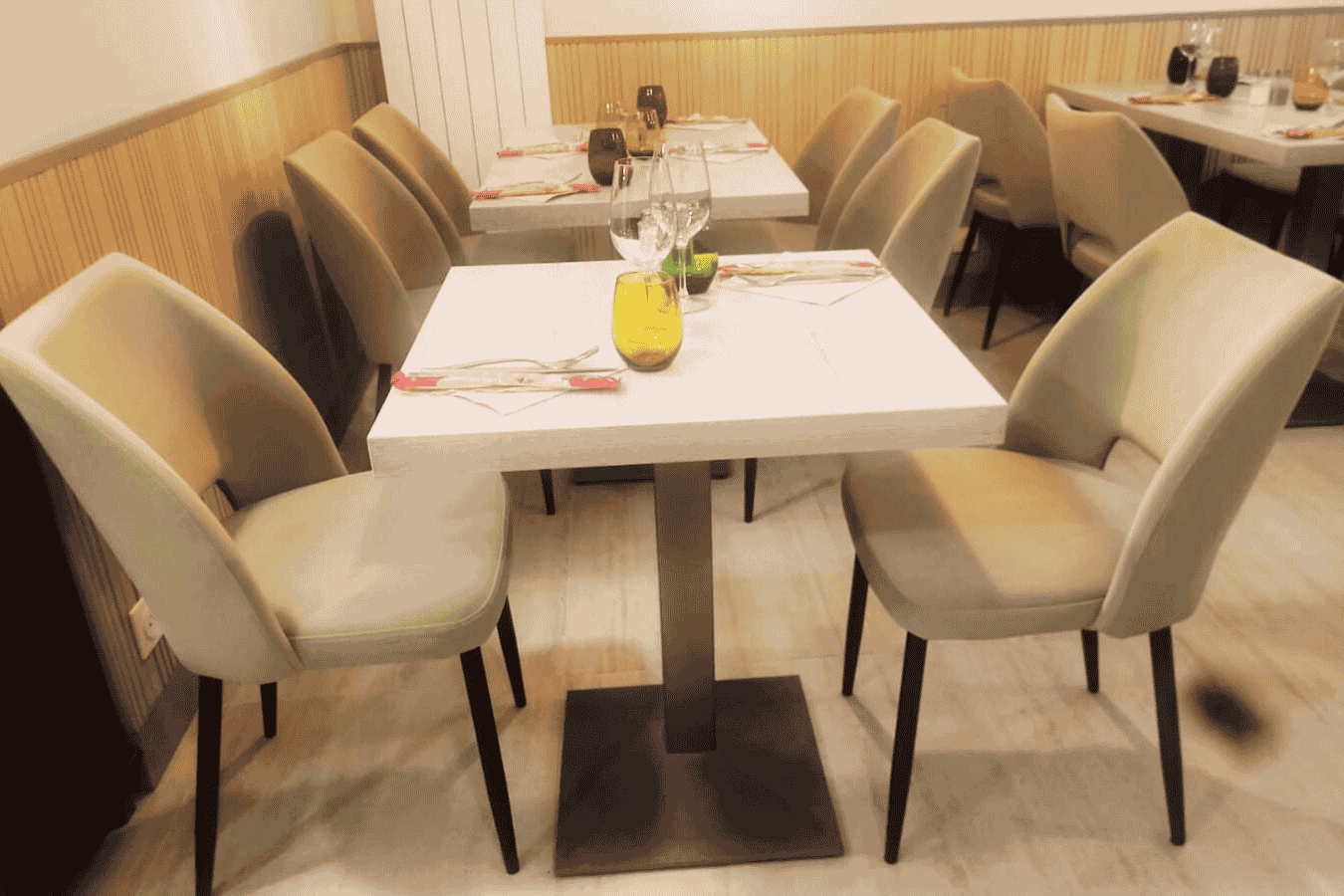 Le service a l’élégance de la discrétion : présent quand il faut, disponible pour expliquer un plat, recommander un accord, adapter une assiette. Les régimes et préférences ne sont pas un obstacle : options végétariennes proposées, alternatives possibles pour limiter le gluten quand la recette s’y prête, attention particulière portée aux enfants et aux groupes.